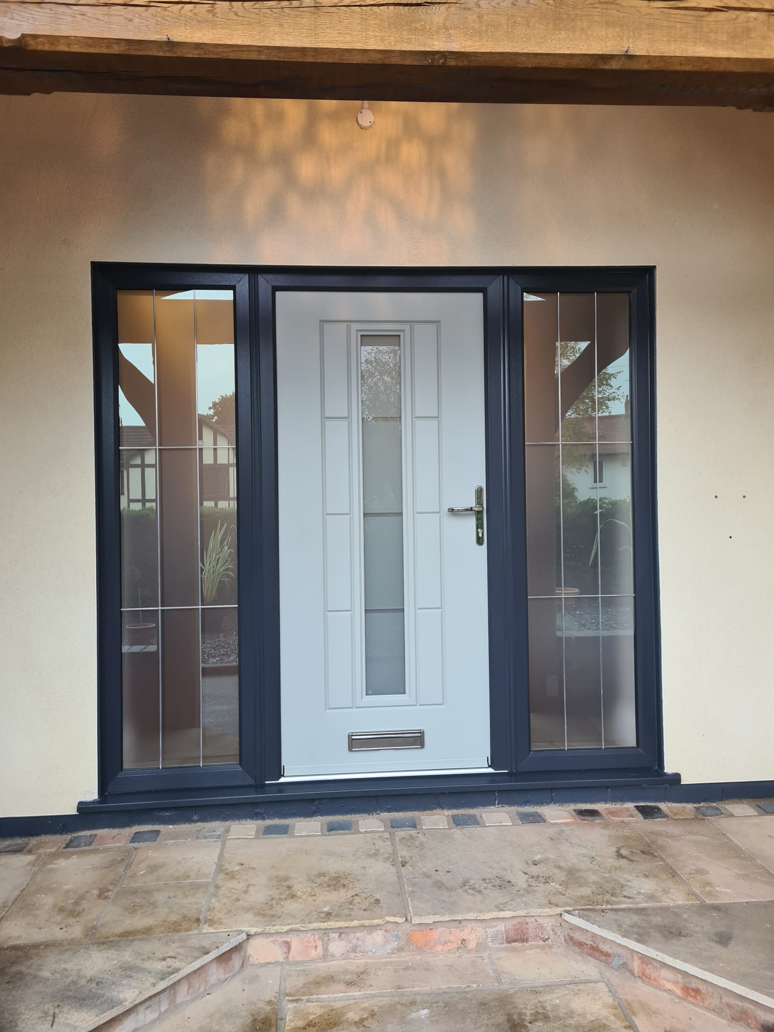 You will find the latest technology and design in our doors, and for added convenience, the doors also provide high levels of security, enabling you to relax in your home with the knowledge that it is secure. Our composite doors are 44mm thick, with a super-strong structure. You can choose from at least 26 styles in seven colours, and we have six finishes of door furniture with a beautiful, comprehensive range of glass styles to suit all tastes available.